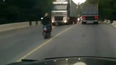 真是奇人!车友骑摩托车睡着与死神擦肩