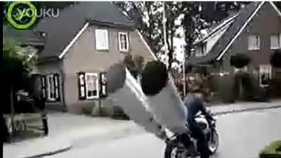太悲剧!哥们儿骑摩托玩飞跃直接撞树