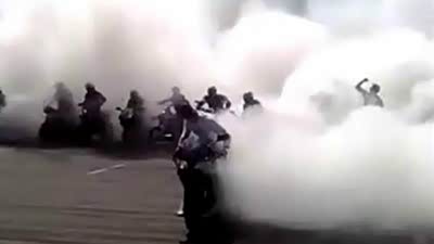 乌烟瘴气!数百台摩托车同时玩烧胎