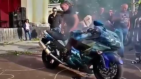 弄啥咧这是!妹子不慎滑进大排摩托后轮