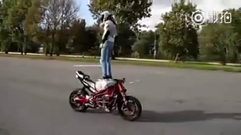 技术厉害 女摩托车手的精彩特技表演