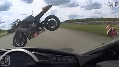 根本不刹车 摩托车狭路相逢人仰车翻