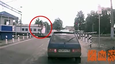 摩托不顾火车路障 腾空起飞落地摔惨