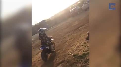 年轻骑手 6岁小孩驾越野摩托车场地狂飙