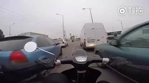 出了事就傻眼!实拍踏板摩托车流中钻缝