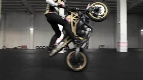 十足帅气 高手骑摩托车翘头玩各种特技