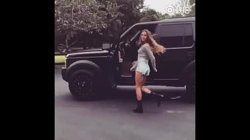 车还跑着呢 美女驾车行驶中跳下车热舞