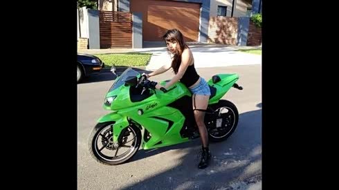 英姿飒爽 性感美女驾驶川崎性能摩托车