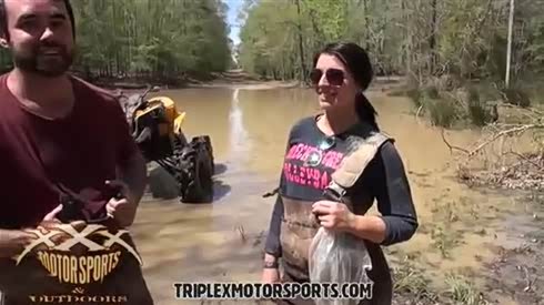 美女车神 轻松驾驶四轮摩托横穿水塘