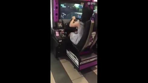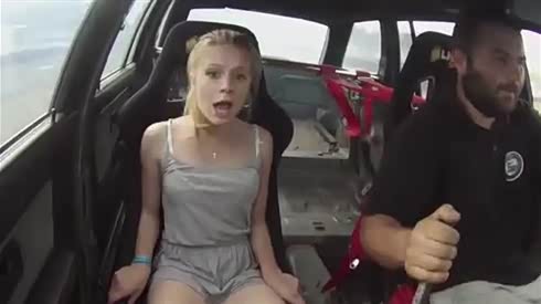 全身都湿了 金发美女抱鱼缸上赛道体验