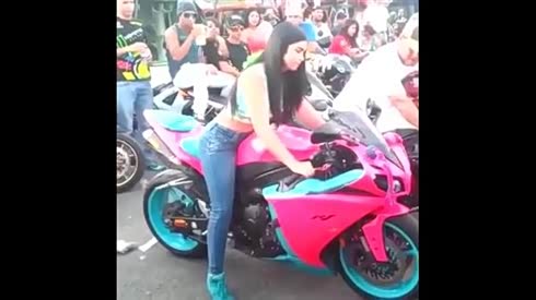 巾帼不让须眉 美女骑雅马哈R1疯狂烧胎