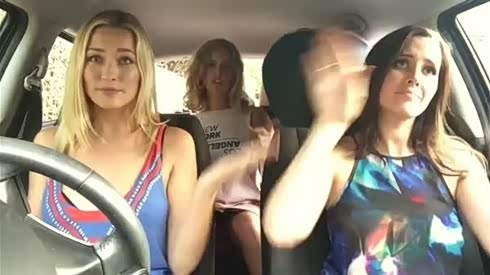 女子持话筒边开车边飙歌