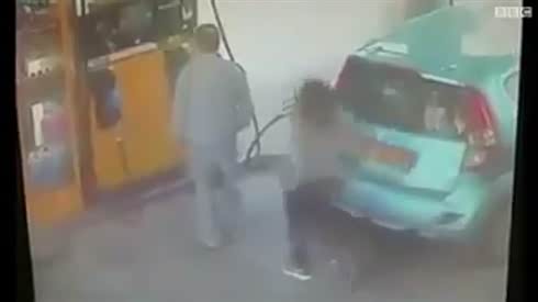 实拍 女司机在加油站恐怖一幕