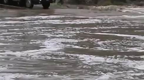 为生活也是拼了 奔驰卡车勇渡汹涌洪水