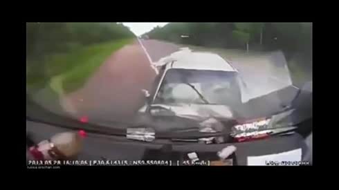 太悲催 轿车被追尾 失控竟和迎面来车对撞