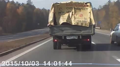 实拍 摩托车女 俩货车会车时超车 被撞惨