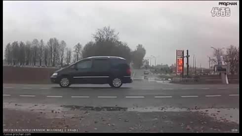 实拍 女司机狂飙遇到坦克掉头 被撞惨