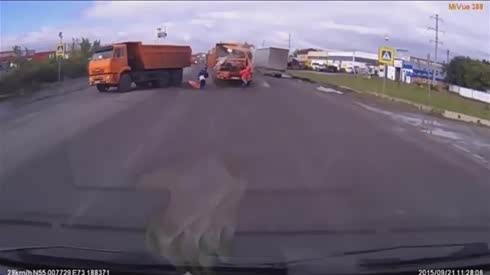 与死神擦肩 超惊险卡车追尾实拍