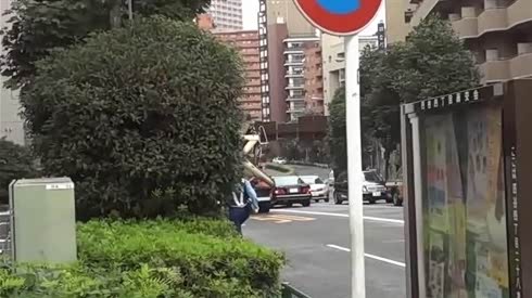 实拍 日本女警怒追违章搅拌车 也是拼了
