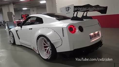 白色战神GTR换装天蝎排气出来亮嗓,狂暴启动、加速。