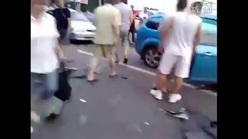 行车记录仪实拍 撞车后女司机被甩出 差点被碾压