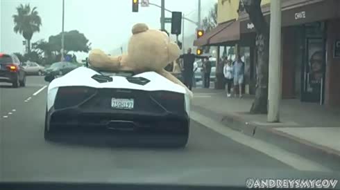 回头率超高 土豪开超跑载玩具熊游街