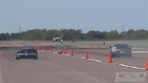 Dodge Viper 与 GT-R 直线竞速时冲出跑道险酿事故