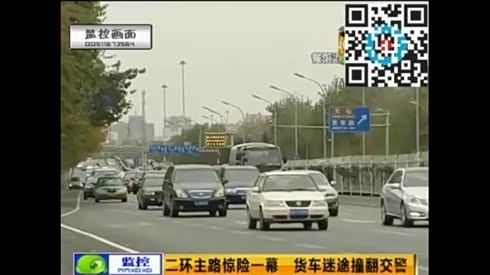 监控实拍:惊险一幕 货车迷途撞翻交警