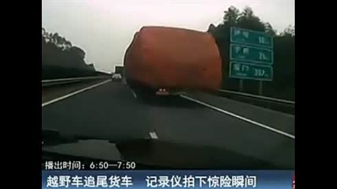 监控实拍:奥迪越野车追尾大货车惊险瞬间