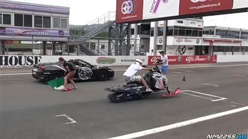 雪橇赛车与法拉利458和F430直道加速赛