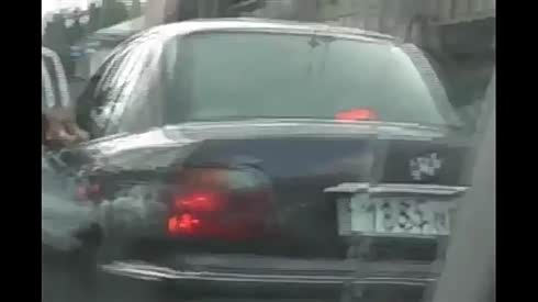 白车随意调头 遭摄像车猛烈撞击