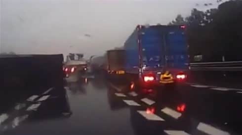 监控实拍:高速惊魂!大货车失控一路狂飙 这是要飞起来啊...