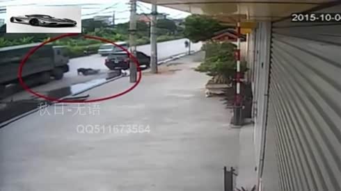 监控实拍:太倒霉!摩托骑士突然滑倒 被大货车瞬间秒杀...