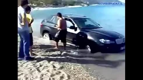 玩的太任性 宝马X5开到海里 怎么也上不来了
