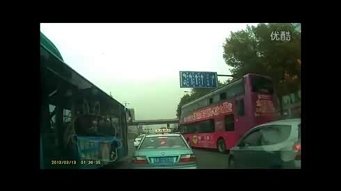 鲁A M0551”35路公交车长途汽车站附近实线变道
