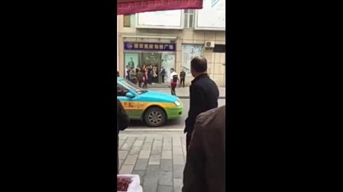 湖北宜昌惊现一男子怒砸警车 特警拔枪将其制服(一)