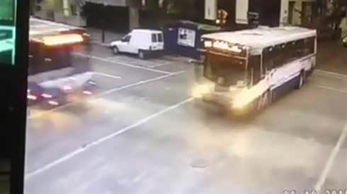 监控实拍:路口闯红灯 两辆公交惨烈相撞...
