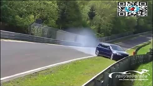 监控实拍:飞车撞击路障翻滚侧滑 恐怖一幕