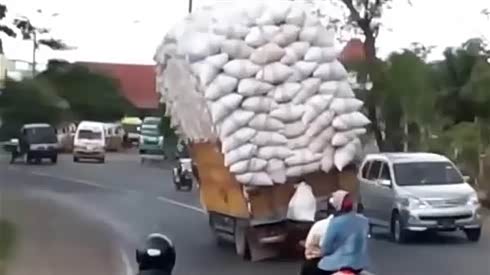 小货车严重超载 行驶如杂耍 结果还是杯具了