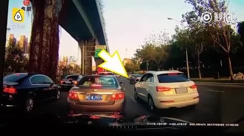 轿车乱停逼停3辆电车 众乘客下车抬移