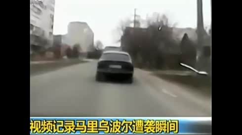 监控实拍:汽车遭火箭弹袭击瞬间 火星四溅