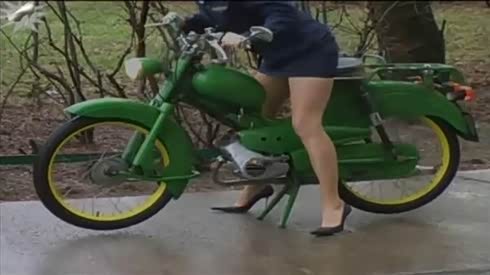 好养眼 看金发超短裙美女 如何骑大排量摩托车