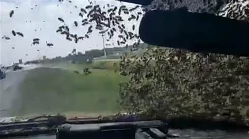 监控实拍:密集恐惧症禁入!车窗玻璃上爬满蜜蜂...
