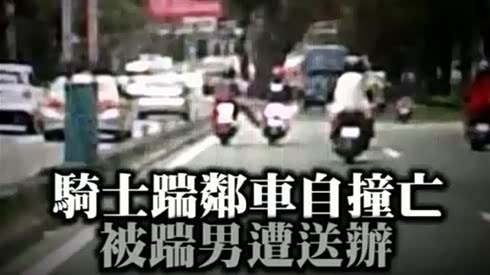 监控实拍:摩托男斗气狠踹邻车 自己滑倒被撞死...