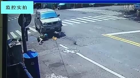 实拍 美女骑摩托闯红灯 惨被SUV撞飞