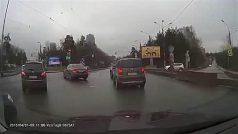 监控实拍:保时捷闯红灯 直接撞去...