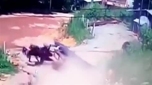 监控实拍:突然窜出一飞车 过路车辆被撞惨 掉进山沟...