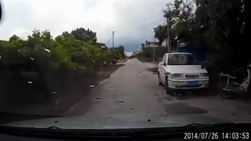 监控实拍:小车失控 横着飞来 躲闪太神奇了...