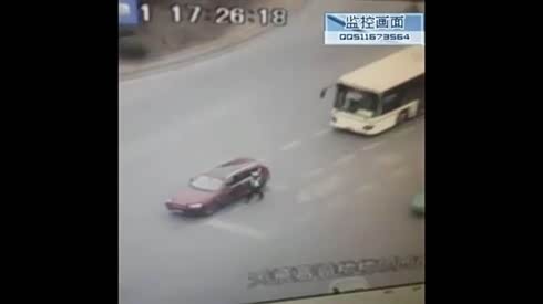 监控实拍:男子抢红灯被撞倒 又遭货车碾过...
