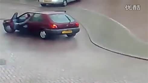监控实拍:摩托哥飞车撞小车 当场爆燃 一片火海...
